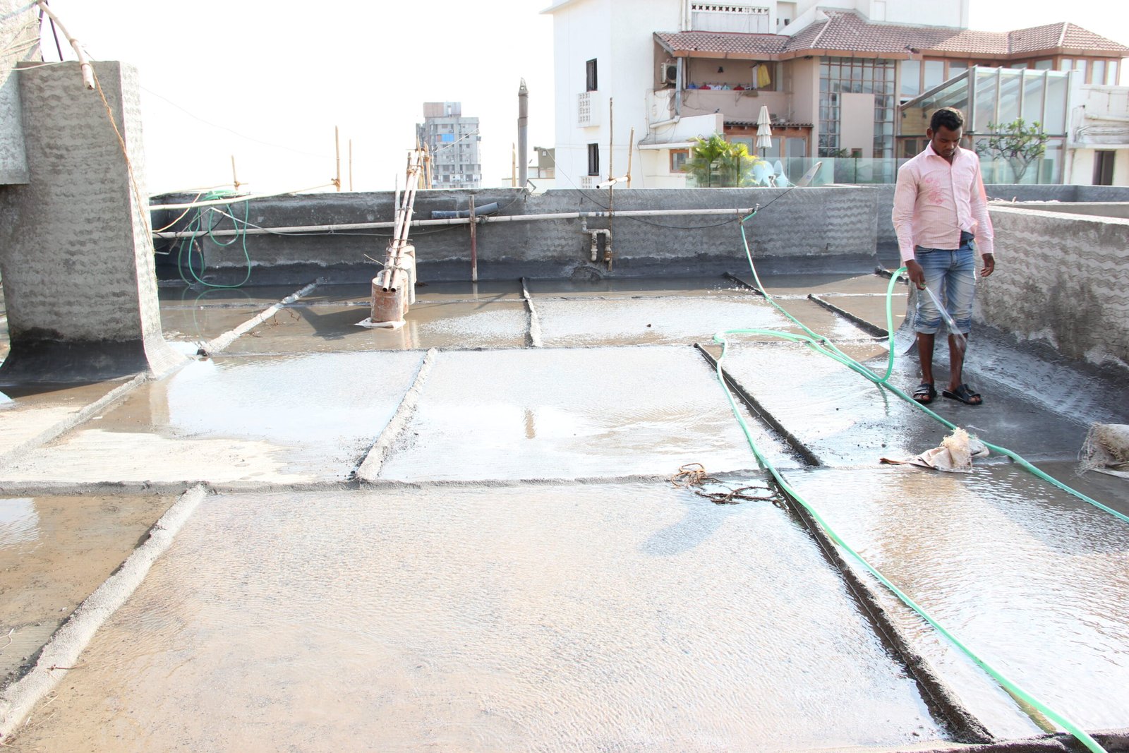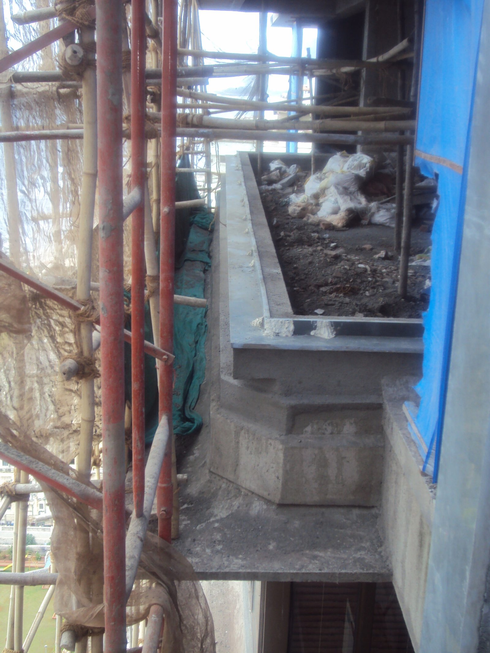 Tying Safety NetsBreaking Terrace WaterproofingCasting Ferro Cement ChajjaCleaning RCC SurfaceCleaning Sand MaterialConcreting Above Weldmesh on TerraceDamaged ColumnDr Fixit NewCoat ApplicationFinal FinishFixing Weldmesh Jali After CleaningIPS Above Brick BatLeveling After Weldmesh FixingLift Hoist for Materials and DebrisMaking Mortar for ConstructionShuttering InstallationAfter De-shuttering ProcessAfter Filling and De-shutteringBreaking Old WaterproofingCuring ProcessMembrane System WaterproofingRCC Grill InstallationTraffigard Coating ApplicationTying Steel BarsWindow Step Sill CastingBrick Bat Koba ApplicationFixing China Mosaic TilesWindow Step Sill ShutteringFixing Kota Stone on Window Step Sill